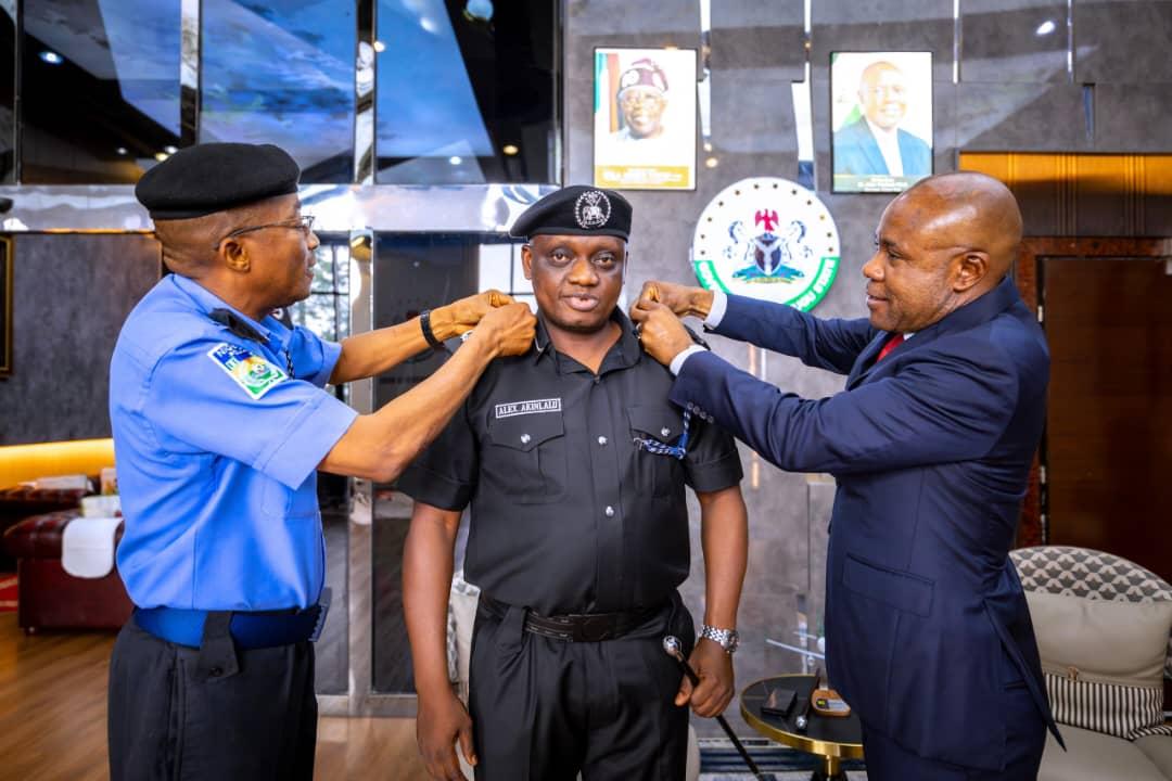 Governor of Enugu State, Dr Peter Mbah, has decorated his Chief Security Officer, CSP Alex Akinlalu, with his new rank of Assistant Commissioner of Police.