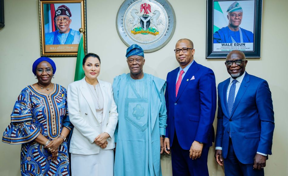L-R: The Permanent Secretary, Ministry of Finance, Mrs Lydia Shehu Jafia; Honourable Minister of State for Finance, Mrs Doris Nkiruka Uzoka-Anite; Honourable Finance Minister and Coordinating Minister of the Economy, Mr. Olawale Edun; the Chairman of the Board of Asset Management Corporation of Nigeria (AMCON), Dr. Bala Mohammed Bello, and the Managing Director/Chief Executive Officer of AMCON, Mr Gbenga Alade at the inauguration of the new Board of AMCON at the Ministry of Finance, Abuja on Wednesday