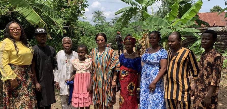 Commissioner for Gender Affairs and Social Development, Enugu State Mrs. Ngozi Enih (middle) with little Miss Ukamaka Okonkwo (4th from left) and others during the visit