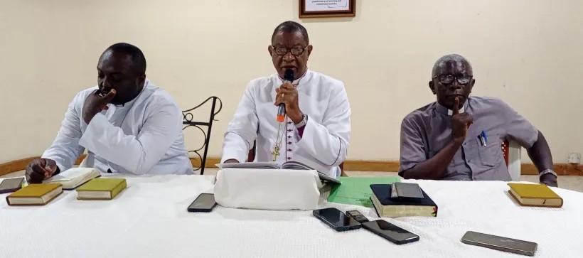 Bishop Samuel Ike (middle) with others during the press conference