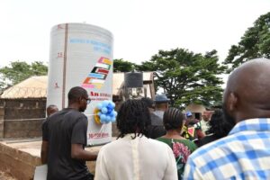The Crowd of students and staff watch with admiration during the commissioning of the water storage tank on the campus