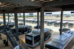 Airel view of the CNG buses in the Bus Terminal… Photo Credit: Government House Enugu Press Unit