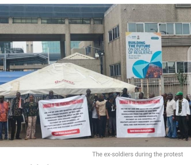 A group of discharged Nigerian soldiers on Thursday resumed protests in Abuja, demanding the payment of their entitlements.