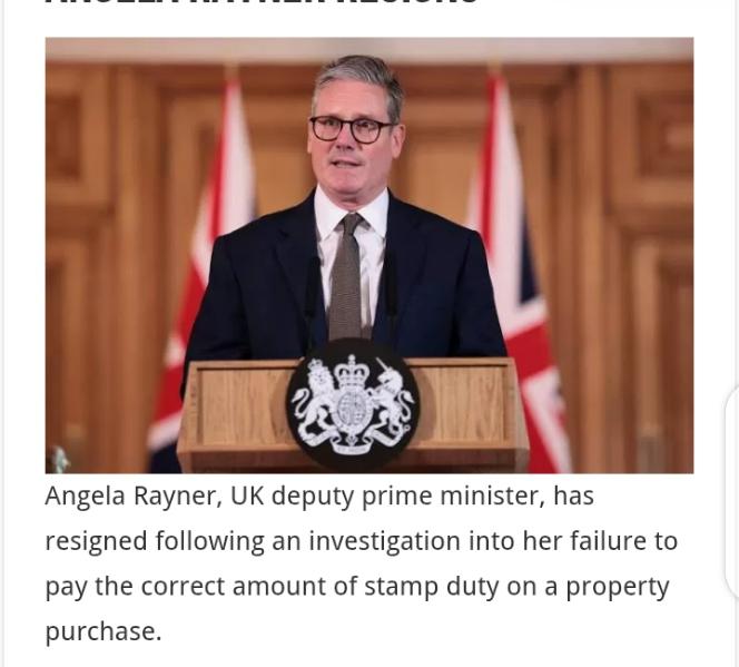 Angela Rayner, UK deputy prime minister, has resigned following an investigation into her failure to pay the correct amount of stamp duty on a property purchase.