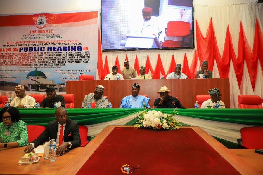 The public hearing was on a bill, sponsored by Senator Ipalibo Harry Banigo, titled “Bill for an Act to Amend Section 21(3) of the Customs, Excise Tariffs, Etc. (Consolidation) Act to Replace the Fixed Ten Naira (₦10) Per Litre Excise Duty on Non-Alcoholic, Carbonated Sugar-Sweetened Beverages with a Percent Levy Per Litre of the Retail Price, and to Provide for the Earmarking of a Portion of the Revenue for Health Promotion and Disease Prevention Programmes.”