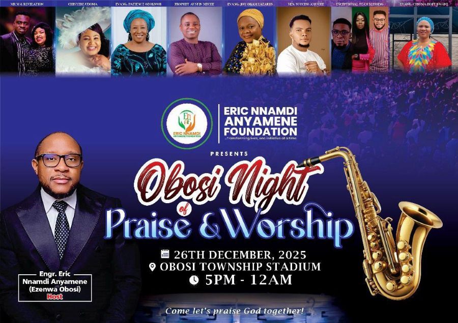 In his opening remarks, the founder of the Eric Nnamdi Anyamene Foundation, Engr. Eric Anyamene, stated that the Obosi night of praise and worship would become a permanent fixture and an annual event in the Obosi kingdom.