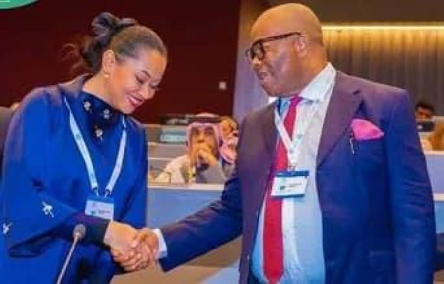 Senator Natasha (left), with Senator Akpabio in a handshake