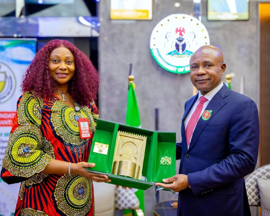 The historic trophy was officially presented to the Governor at the Government House, Enugu, by Ambassador Mrs. Amaka Nweke JP, who represented Enugu State and Nigeria at the global congress and emerged as the overall winner among scores of world-class scientists, ministers, researchers, and policy experts from over 100 countries.