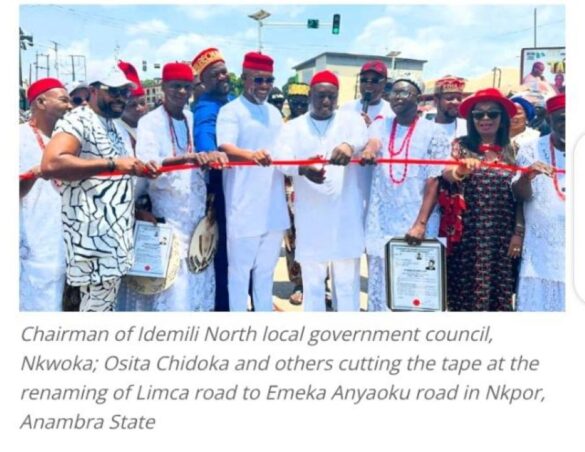 The Idemili North Local Government Council of Anambra State has renamed the famous Limca Road at Nkpor after the former Secretary General of the Commonwealth of Nations, Chief Emeka Anyaoku.