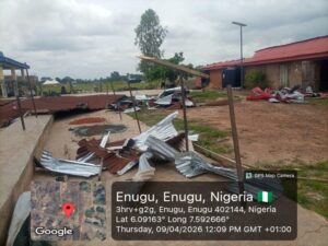 “The ferocious windstorm, which occurred at about 9.30pm on April 6, was accompany with heavy rainfall. It wreaked havoc in several autonomous communities including Ukete, Achara, Ameke, and Mmafu in Oduma, Aninri LGA, Enugu State.