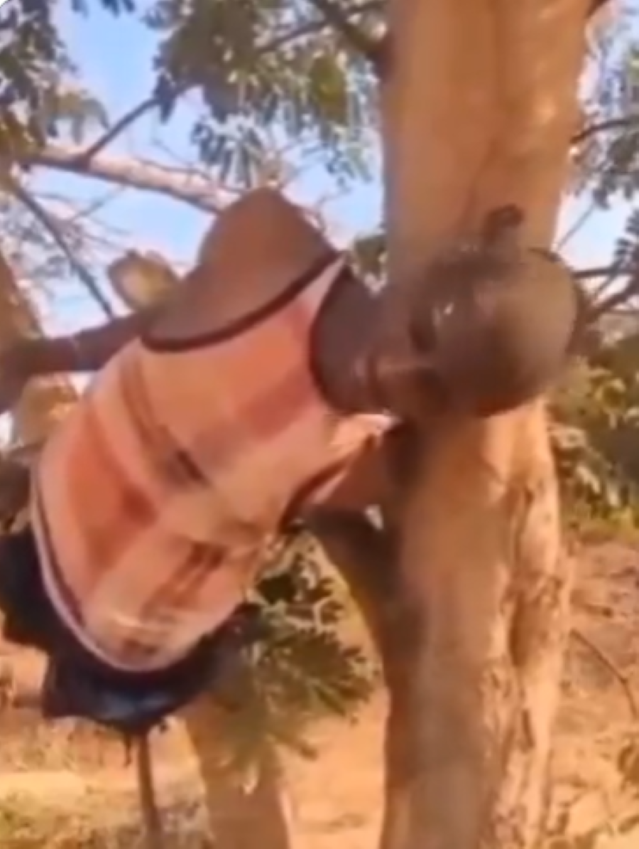 In a video circulating online, the suspect, tied to a tree while being questioned by security personnel, repeatedly referred to an unnamed figure he described as “Manga Manga” and “Baban soja,” a Hausa phrase meaning “big soldier.”